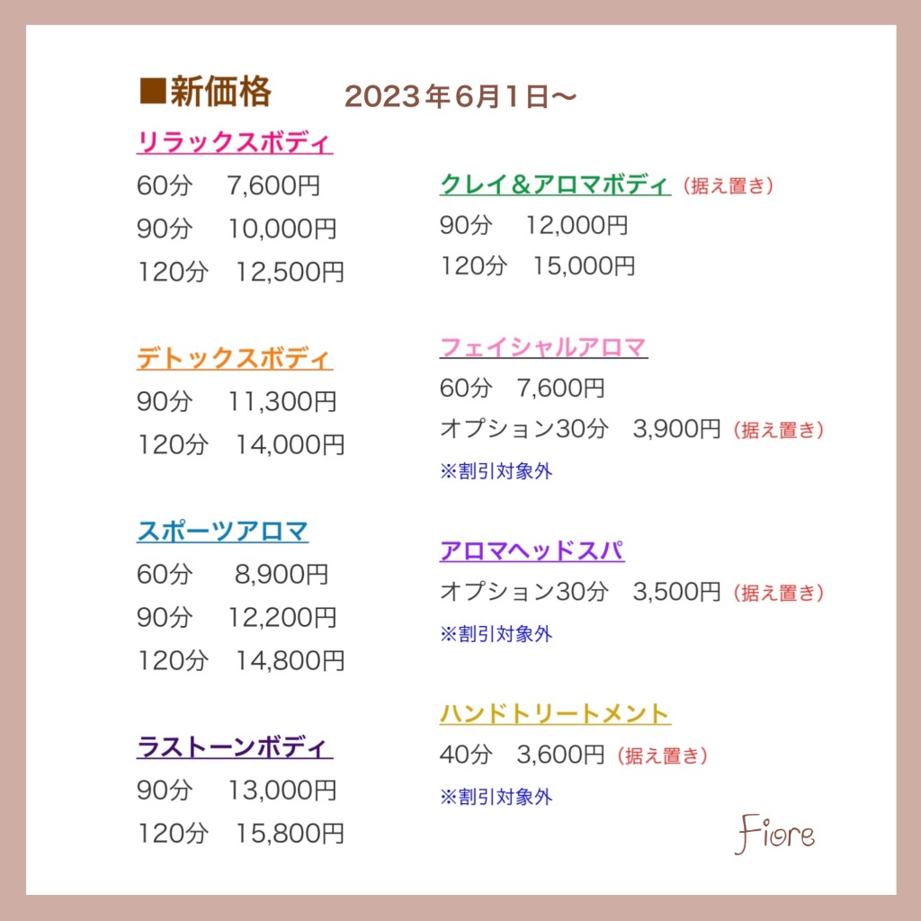 サロン価格改定のお知らせ(2023年6月1日~)