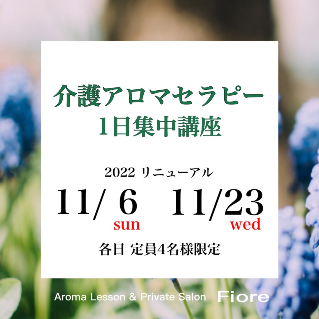 【11月開催】介護アロマセラピー1日集中講座ご案内